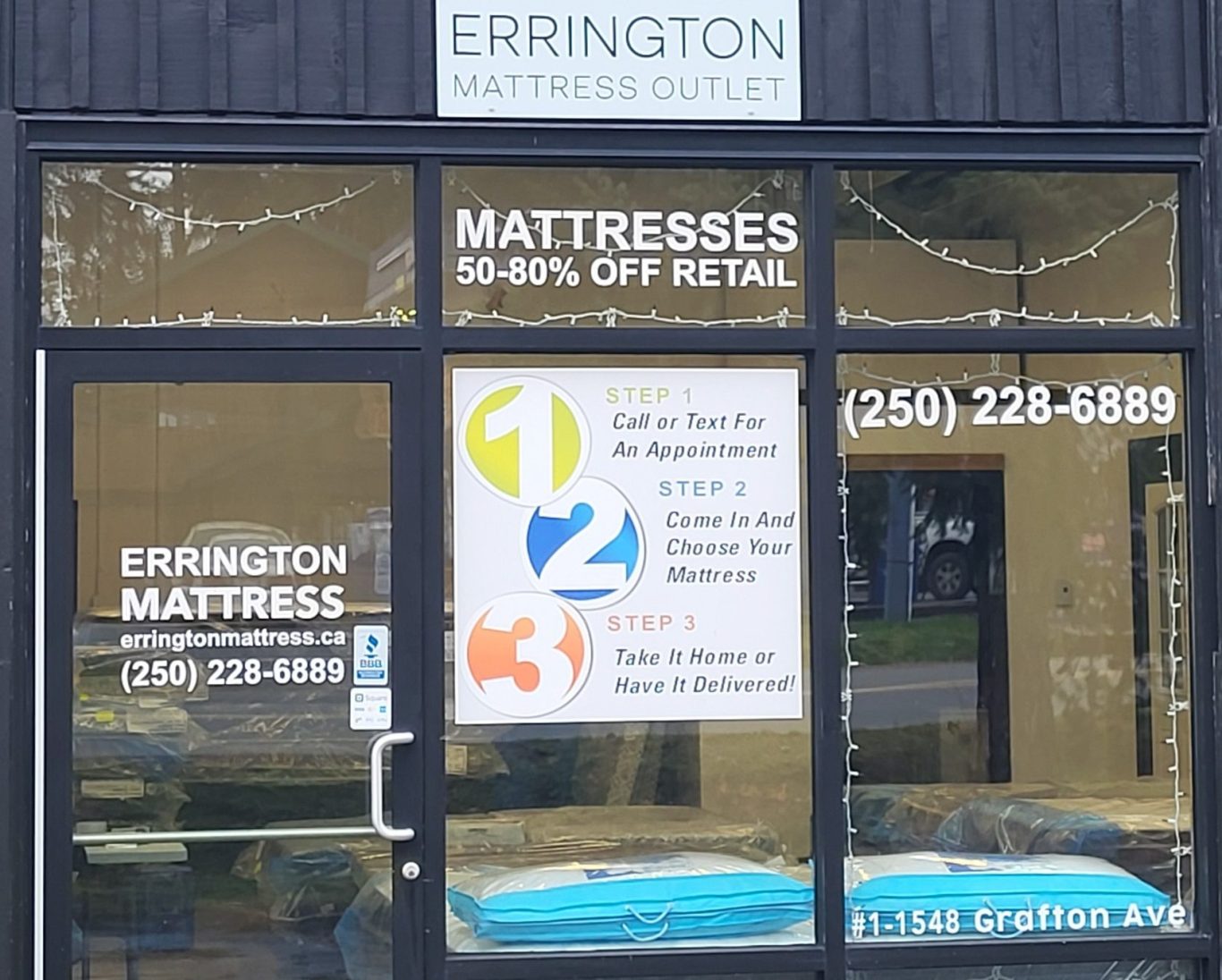 Errington Mattress Outlet in Errington, BC is not a traditional mattress store. I don't have salespeople and keep overhead costs low in my shop. This allows me to provide individualized service while saving you money. I can help you find the right mattress at a great price. Book an appointment today and you could be sleeping on your new mattress tonight! - Tom
